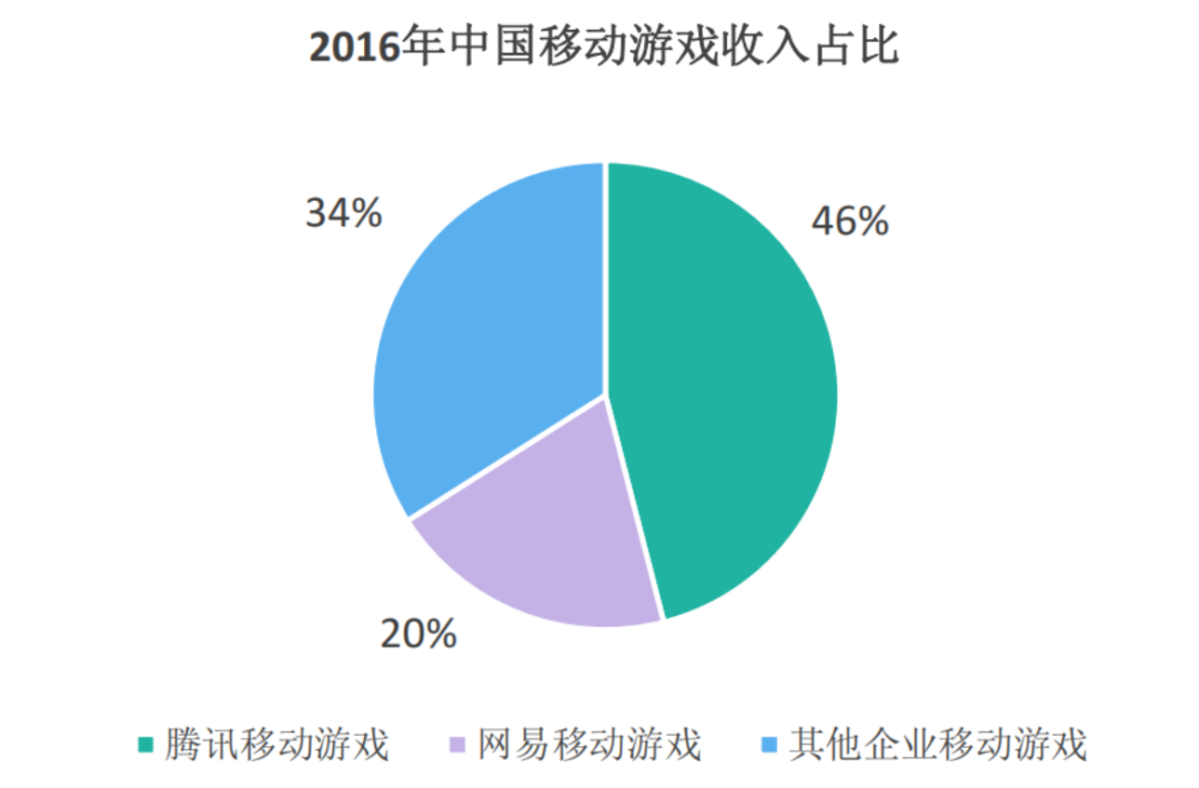 在2016年,市场格局产生了些变化——2015年年底腾讯的《王者荣耀》上线,次年网易上线《阴阳师》。游工委的《2016中国游戏产业报告》披露,腾讯和网易两家公司的手游收入占比达到整个市场的66%,其他企业没有一家占比超过5%。同时,手游市场的份额占比也终于超过端游,成为国内游戏最大的细分市场。