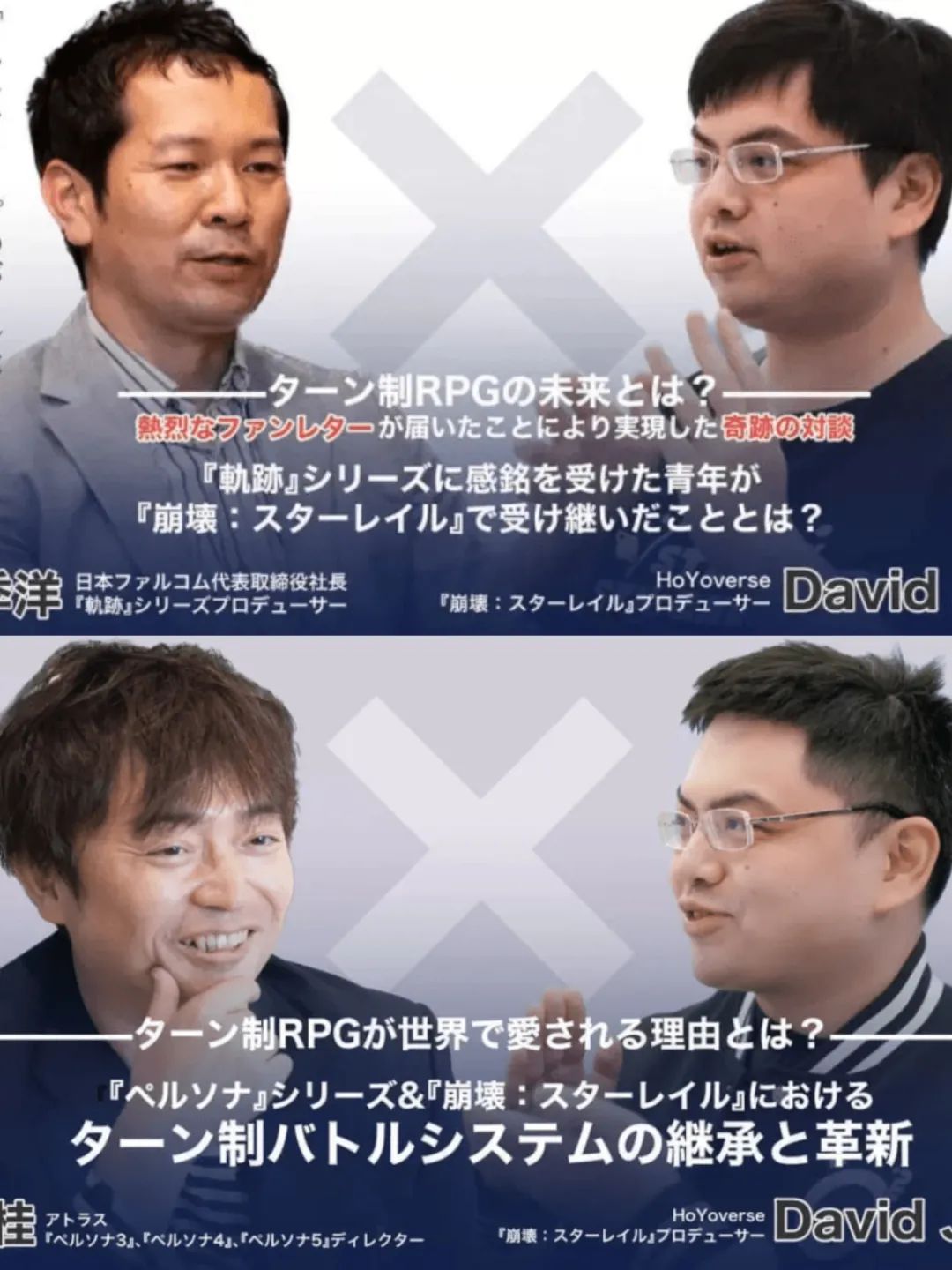 去年《崩坏:星穹铁道》上线前,由日媒组织了一场由该游戏制作人大卫和Falcom社长近藤季洋(《轨迹》《伊苏》系列)、Atlus制作人桥野桂(《女神异闻录》系列)的对谈活动。