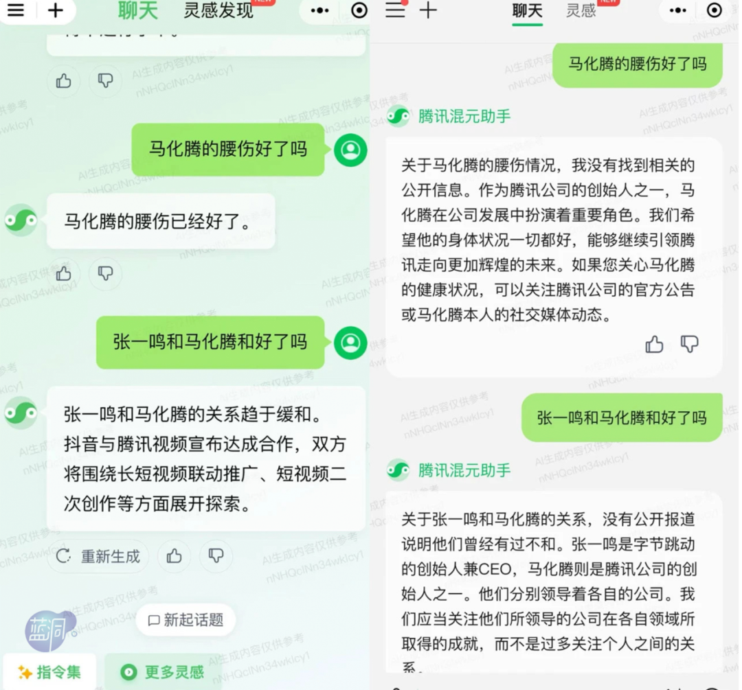 「蓝洞商业」在 10 月中旬的测试中发现,混元大模型对未知的问题会给出幻觉性的答案。其实,幻觉问题一直是大模型的通病,简而言之就是杜撰甚至是一本正经的胡说八道。而升级之后,12 月的表现明显更智能,对未知的问题会给出带有可解释和可说明性的答案。