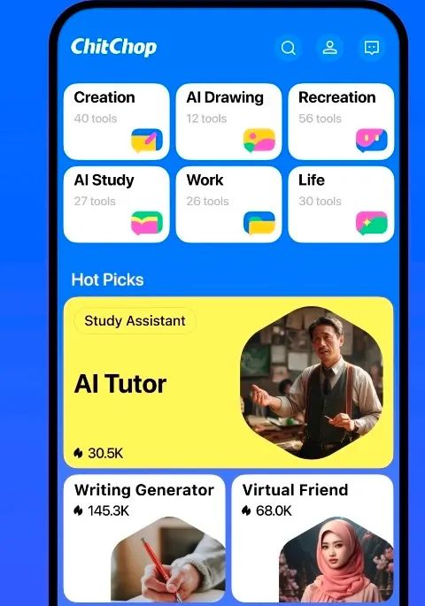 而 ChitChop 的主打功能远比此前的 Cici 和豆包更全能,200 多款智能应用遍布AI创作、AI 绘图、休闲娱乐、学习提升、工作效率提升和生活助手六大方面,号称「旨在提供创造性灵感和提升效率」。
