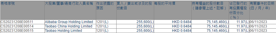 港交所文件显示,阿里巴巴集团近日以每股0.6484港元的价格卖出25.56万股快狗打车H股股份,持股比例由12.01%降至11.97%。