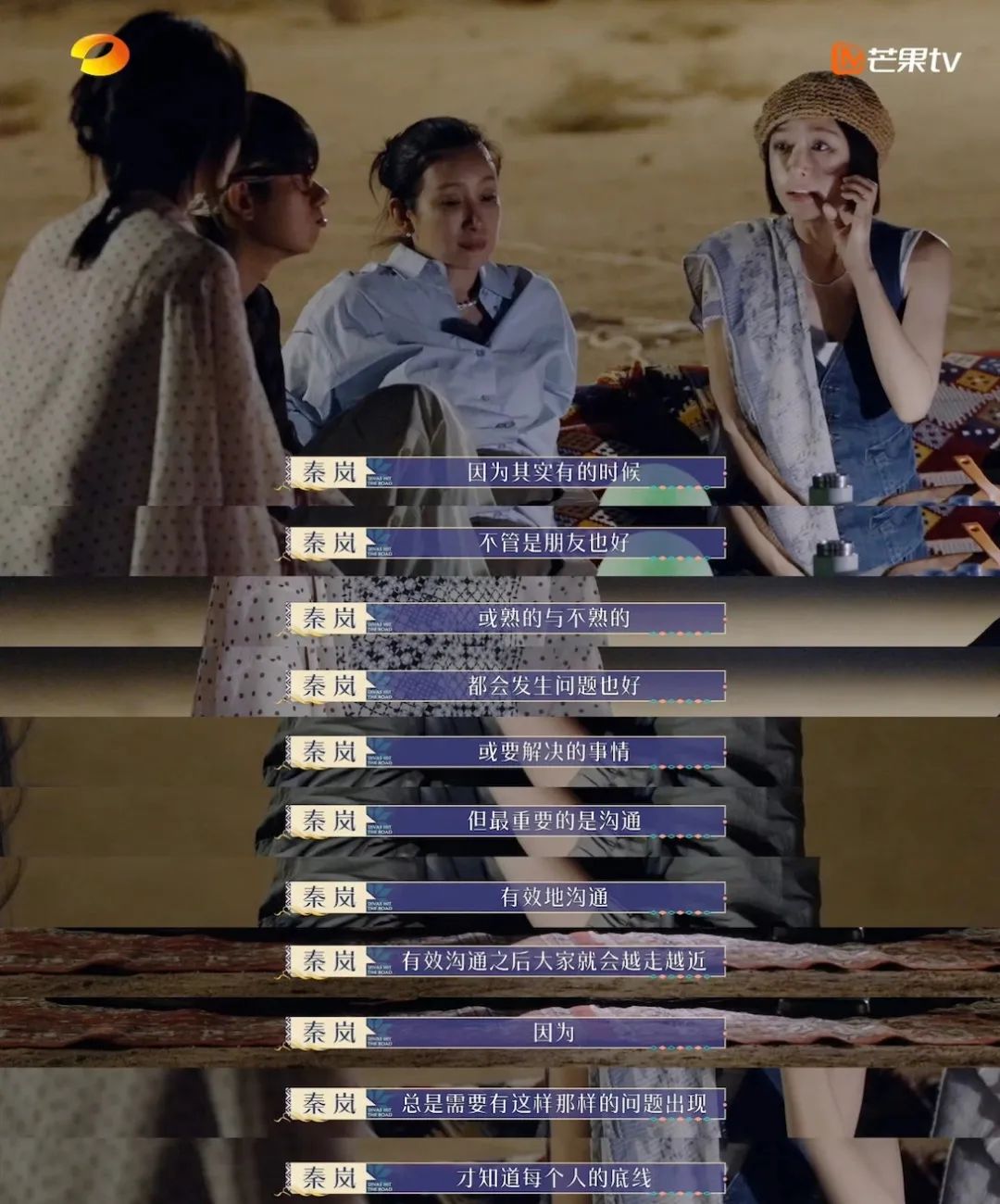 看《花少5》的观众,无论e人i人,都能自我投射其中感受到一个高质量相处的旅行团有多舒适。比如,时常无条件给后辈善意提醒的“大姐”秦海璐让人暖心,甘当最强辅助关键时耐心开导兄弟的“小胡”胡先煦让人舒心,极善沟通凭沙漠谈话一己捏合团队凝聚力的“二姐”秦岚让人安心。