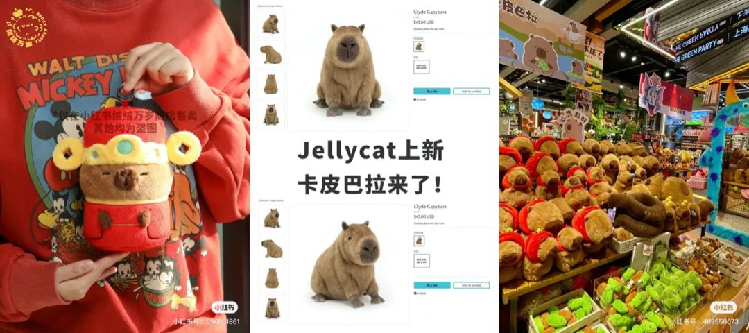 随后,毛绒顶流品牌Jellycat、国内连锁生活方式品牌The Green Party也相继推出了水豚毛绒玩具,引发了消费者的抢购浪潮。