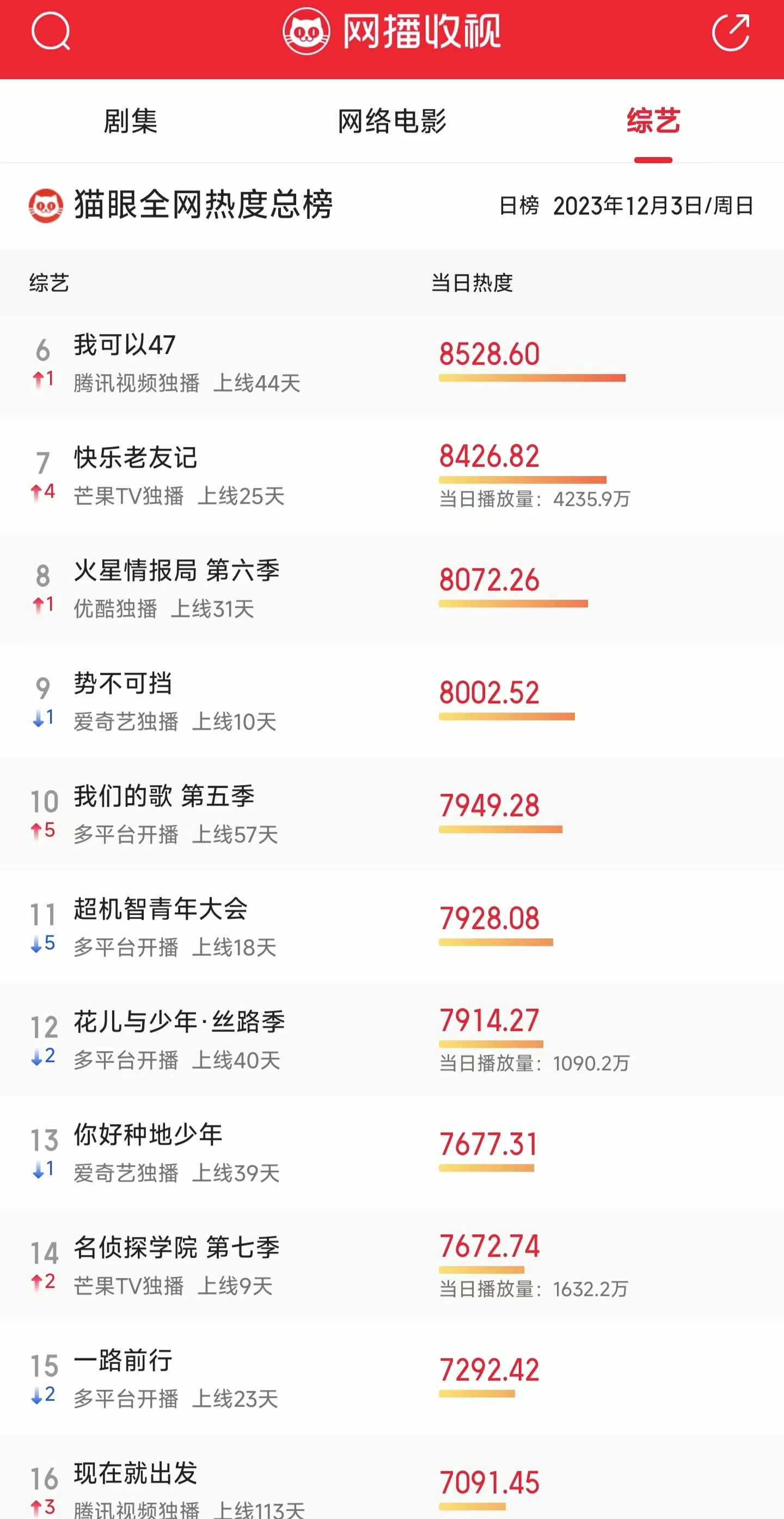 11月腾讯推出严敏的《我可以47》,试图冲击运动类综艺天花板,爱奇艺把原定于2024年播出《势不可挡》火速上架,芒果TV则把旗下多年的减肥真人秀《哎呀好身材》改为双人成行的“体能竞技”节目,一时间体能竞赛类目突然在综艺市场集中爆发。