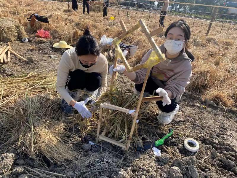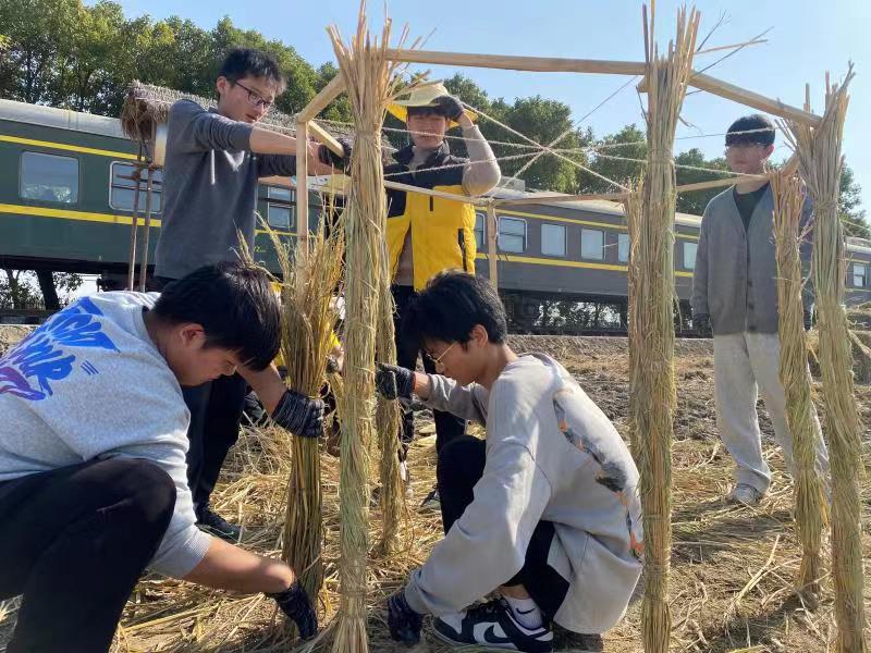 “我们需要先用木条打造框架,再按步骤铺设稻草。”正忙着制作“稻草收割机”的大二学生李铖介绍,为了把稻草变废为宝,他们已提前做过多套设计方案,与小组同学共同讨论了支架定位方法和艺术装置的尺寸,“我们还准备了颜料、鲜花等辅助装饰,以期装置能呈现可爱有趣的效果。”
