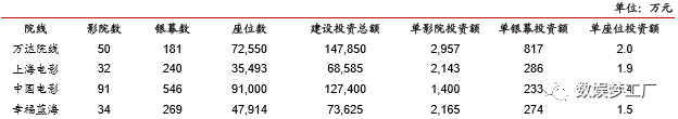 上市各院线自建影院投资金额(数据来源:招股说明书、华泰证券)