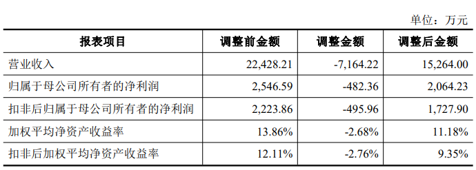 2021年,兆信股份调整前营收为2.24亿元,调整后为1.53亿元。调整前公司归母净利润为2546.59万元,调整后则为2064.23万元。