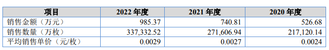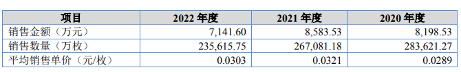 数据显示,2020年兆信股份物联网标识销售价格为0.0289元/枚,到2022年增长至0.0303元/枚,三年内该产品价格上涨4.84%。