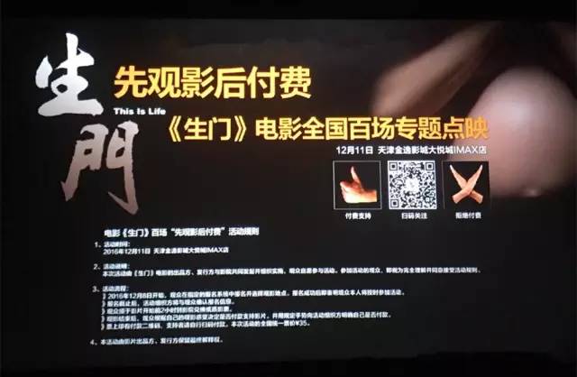 同样走“呼吁”路线的纪录电影《生门》的处境则更为尴尬。这部讲述“新生命孕育”的纪实故事,在点映场曾引发不少观众强烈感触甚至“泪奔”,但这部在贺岁档上映的电影同样遭遇低排片的市场窘境。中国院线“三剑客”高军、吴鹤沪、赵军曾发表联名公开信,表示电影《生门》将展开“先看后付款”一百场点映活动,观众可到指定影院观影,并可在放映结束后自主决定付或者不付票款。遗憾的是,这样的举动并未引起市场太多的反响,截止1月4日该片票房仅为101万元。