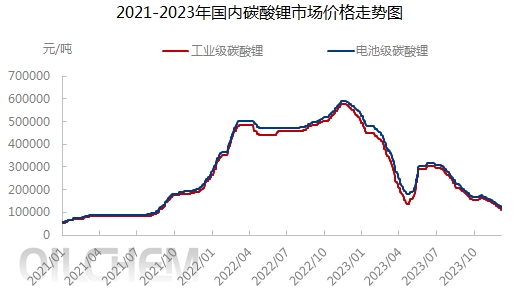 上游环节,截至12月,锂电上游碳酸锂价格已全线跌破10万元/吨大关。而在去年,由于动力电池及储能行业需求爆发,上游原材料一度供不应求,碳酸锂最高曾攀升至60万元/吨。