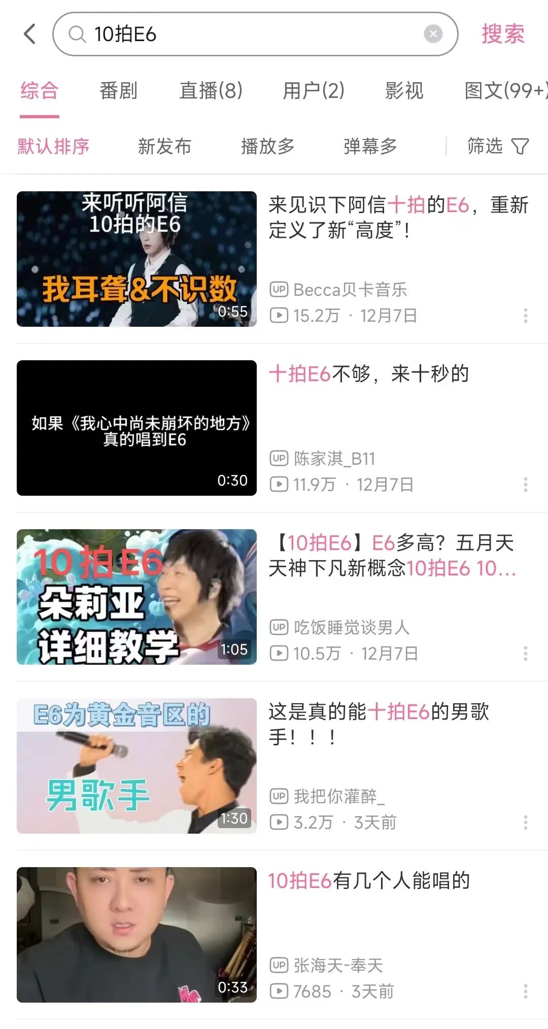 △B站#10拍E6搜索结果,朵莉亚、黄霄云是高频元素