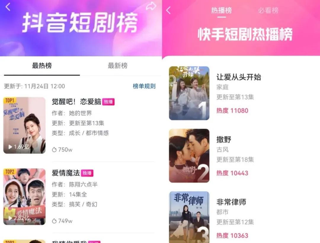 我们看到,今年确实有更多广告主开始把营销预算拨向短剧。一方面,最爱投放短剧的美妆个护品牌今年发力迅猛,韩束、珀莱雅、丸美、诗斐丝、一叶子等品牌都在抖快平台批量打造“定制短剧”,其中韩束短剧《心动不止一刻》播放量触达惊人的11.9亿,带动红蛮腰系列产品上半年全渠道销量150+万套。