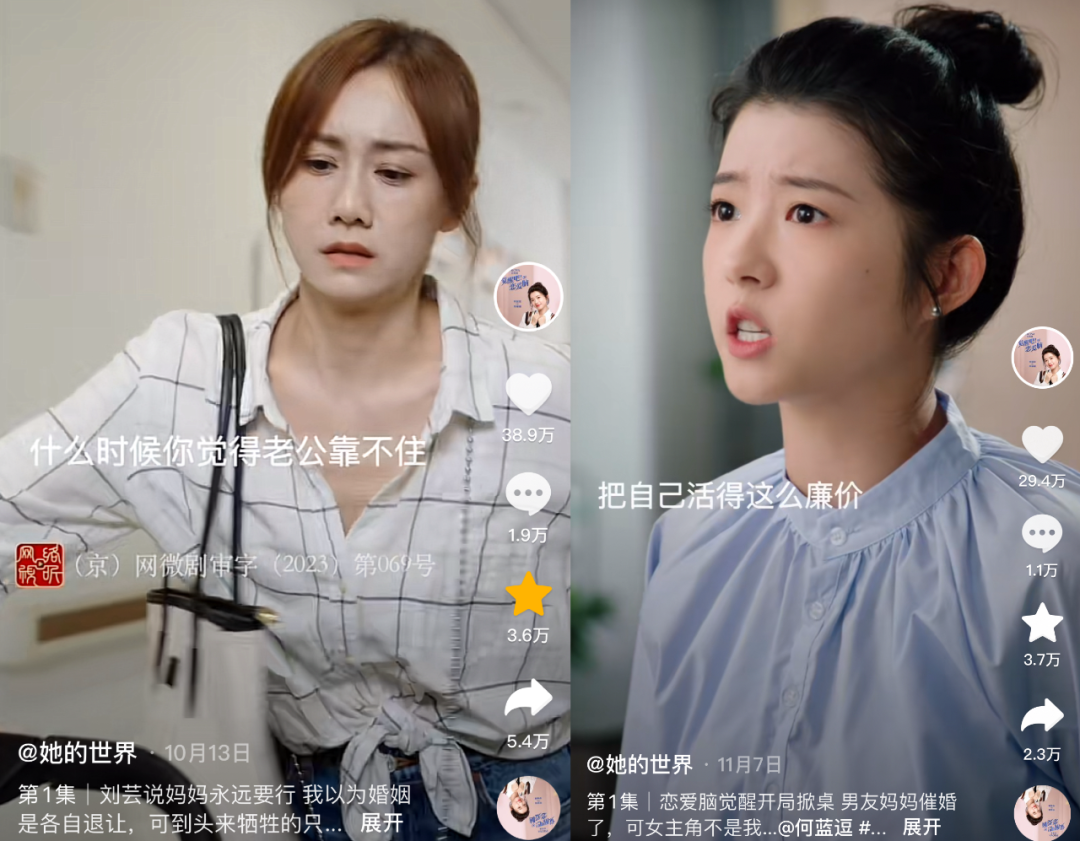 整体来看,目前的品牌短剧往往只有两个“发布平台”——短剧账号和达人账号,前者代表是柠萌影视旗下短剧厂牌“好有本领”、完美世界旗下短剧厂牌“她的世界”等,后者最知名的有“姜十七”“魔女月野”“放扬的星星”“一只璐”等抖快平台高人气达人。