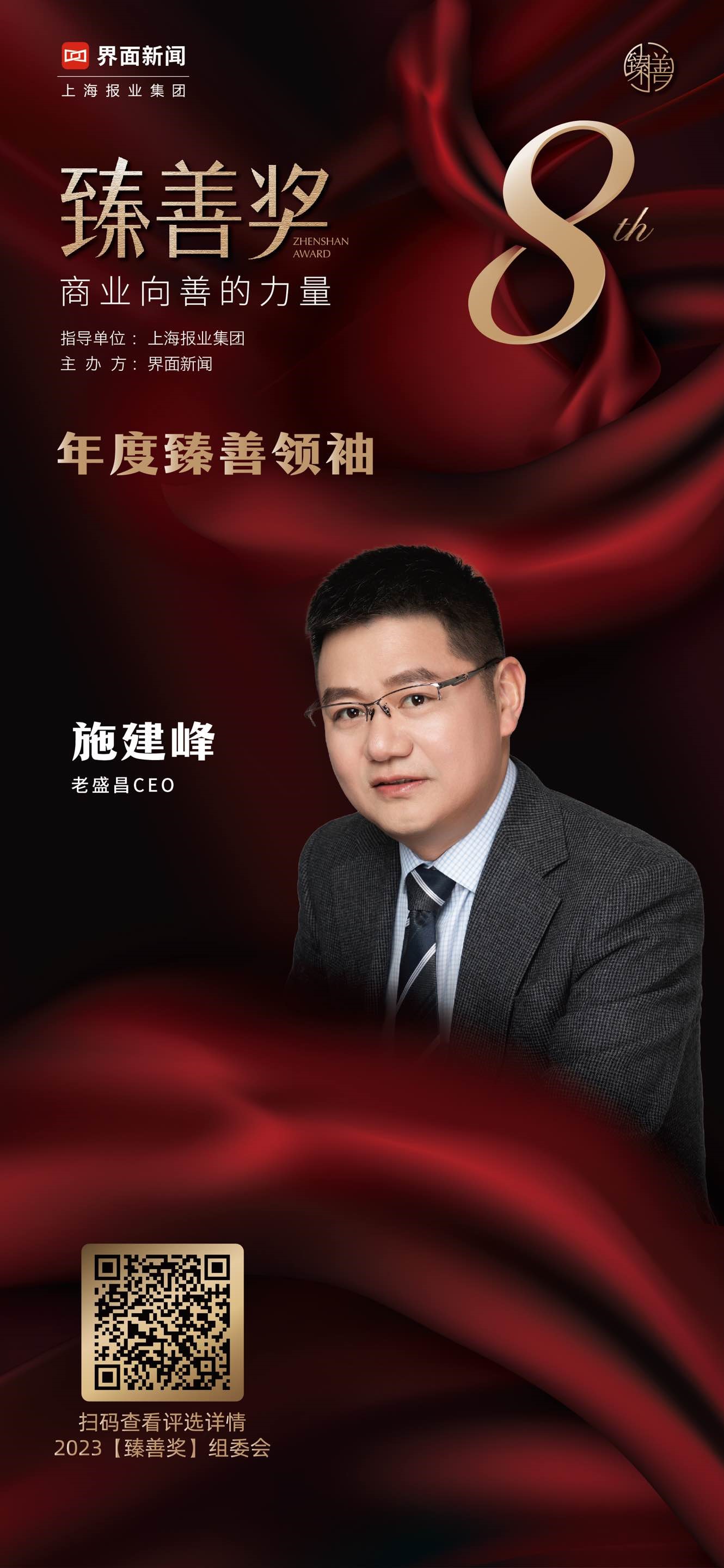 12月13日,上海报业集团 | 界面新闻在上海中心举办了2023【臻善奖】颁奖典礼,并正式公布了本年度获奖名单。聚“商业向善”之力,本届【臻善奖】吸引了一大批在公益慈善领域有所贡献的优秀企业和公益人士参与。老盛昌CEO施建峰怀着对生命的敬畏,展现社会关怀,荣膺年度臻善领袖。