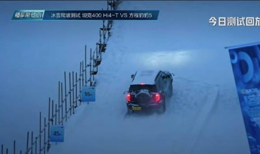 网友@回看射雕处 质疑:在冰雪爬坡测试中,坦克400对阵方程豹5,测试人员似乎故意让坦克400刹车。方程豹5溜坡严重还是它赢,这得充了多少钱?