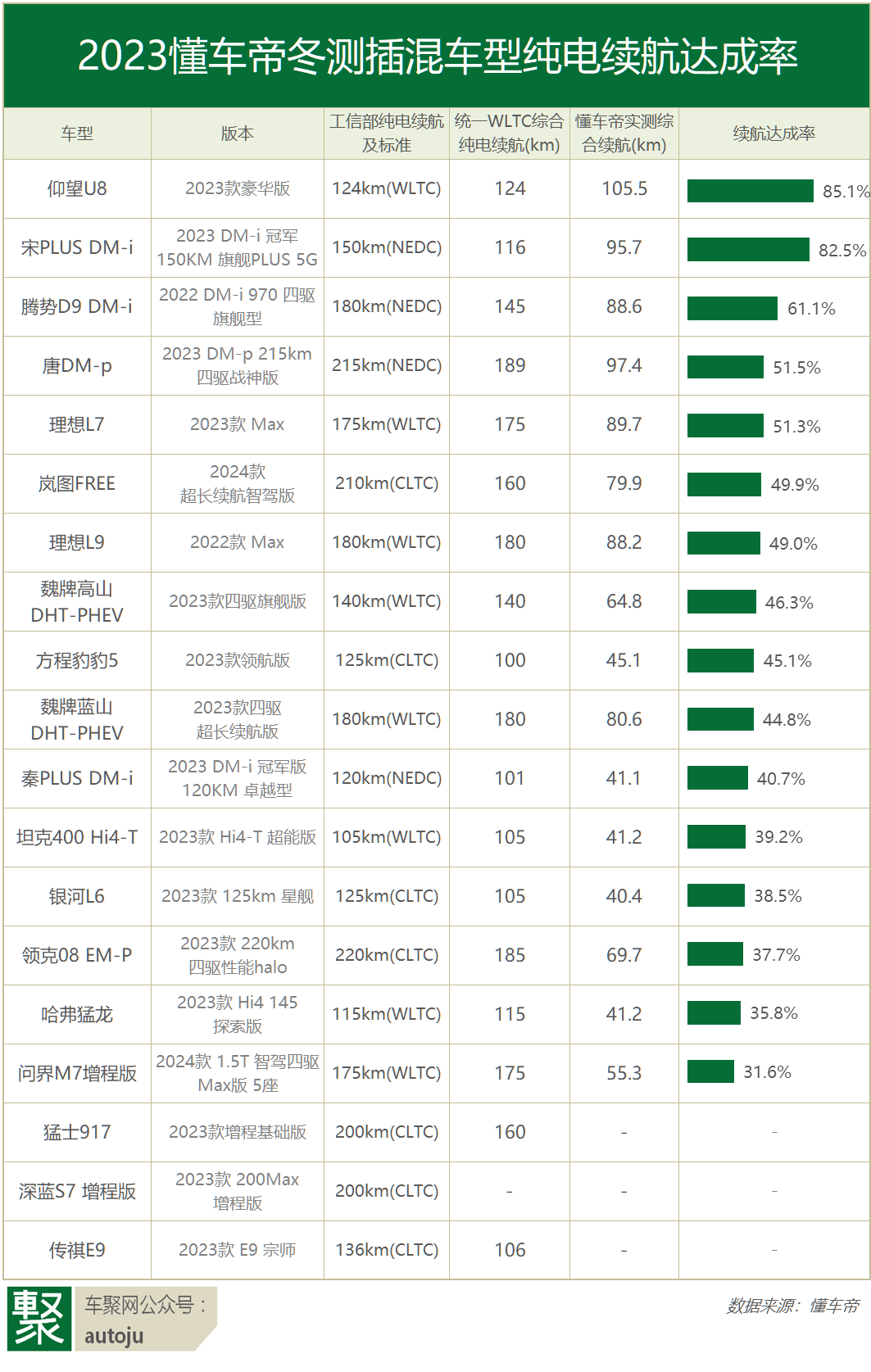 但对“插混组统一WLTC4标准纯电续航达成率”的测试,表示强烈不满。