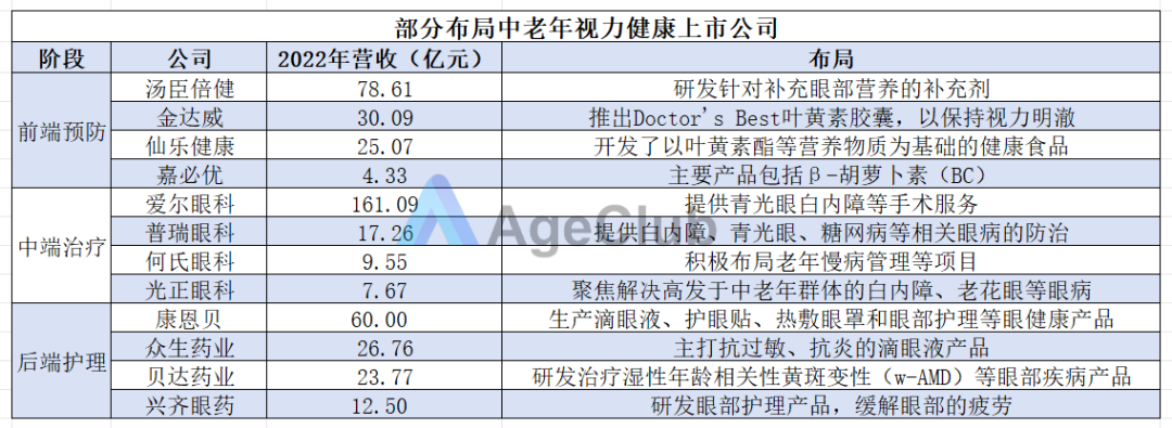 近年来,我国不乏上市公司和企业巨头选择从前端、中端或后端入手,争先布局中老年视力健康这一细分赛道,投资和创新热度持续飙升,市场增量空间不断增大。