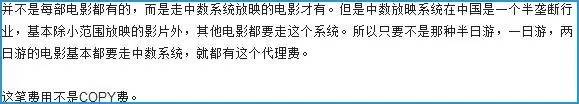 3、影院从中分走约57%。有些时候这一比例片方和影院可自行协调。
