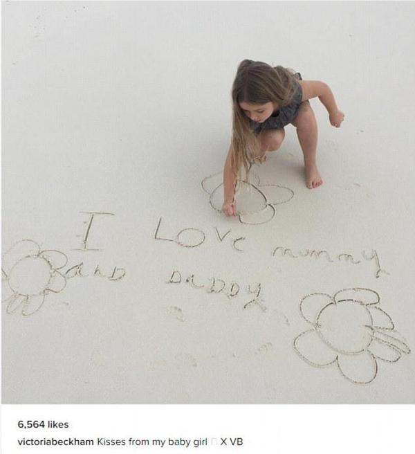 圣诞新年之际,贝克汉姆一家人选择在马尔代夫度过,维多利亚还在社交媒体上分享了“小七”在海难上写下了“我爱爸爸妈妈”的照片,并配文“我亲爱的爱贝女儿,哈珀在海滩上作画和她想要说的话。”