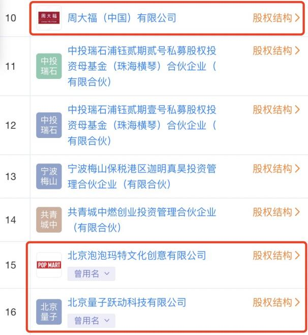 有意思的是,在老铺黄金申请港交所上市的前三天,公司“匆忙”进行了一次增资,入股机构穿透后,看到了周大福等同行及抖音、泡泡玛特的身影。