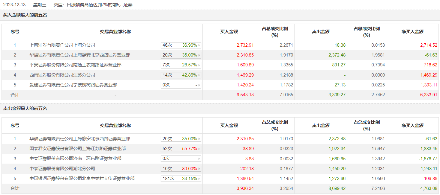 具体来看,知名游资现身龙虎榜,上海证券上海分公司、华福证券上海静安北京西路证券营业部分别买入2732.91万元、2310.85万元;华福证券上海静安北京西路证券营业部、章盟主(国泰君安证券上海江苏路证券营业部)分别卖出2372.48万元、1922.34万元。
