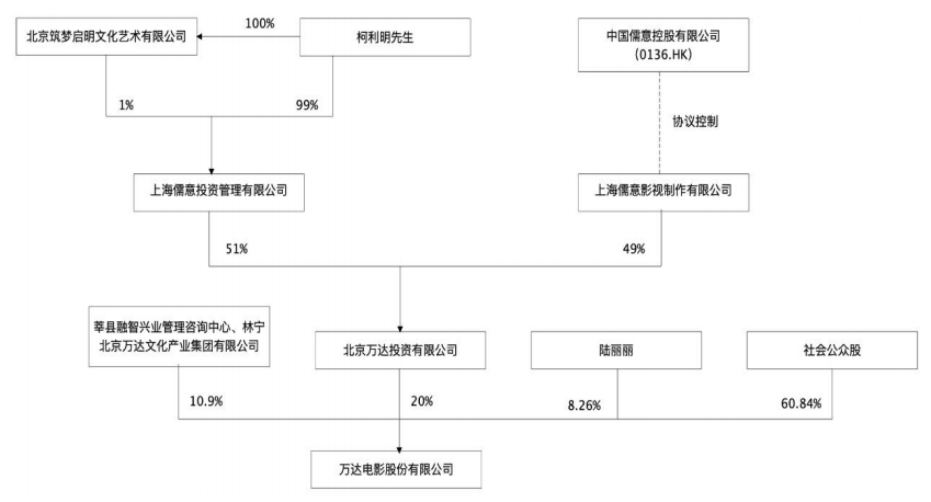 此外,中国儒意通过协议控制的儒意影视持有万达投资49%股权,柯利明亦持有中国儒意总股本16.34%的股份。