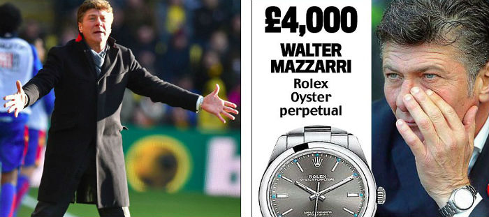 而来自于《每日邮报》的调查还显示,不久前刚刚被解雇的前斯旺西队主教练鲍勃·布拉德利的手表价值仅有40英镑。