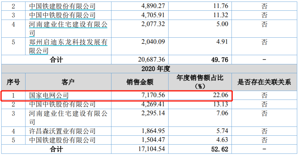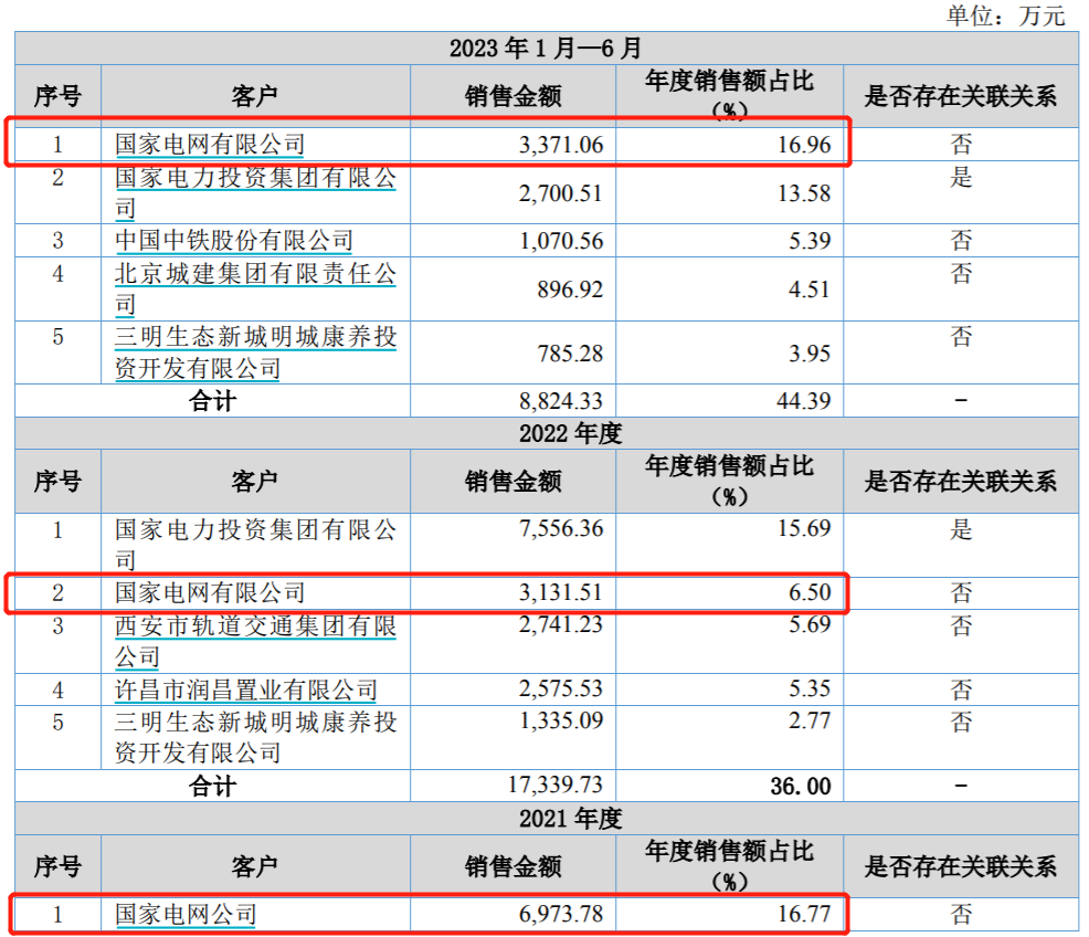 除2022年外,国家电网始终为公司第一大客户,2022年,国家电网是公司第二大客户。
