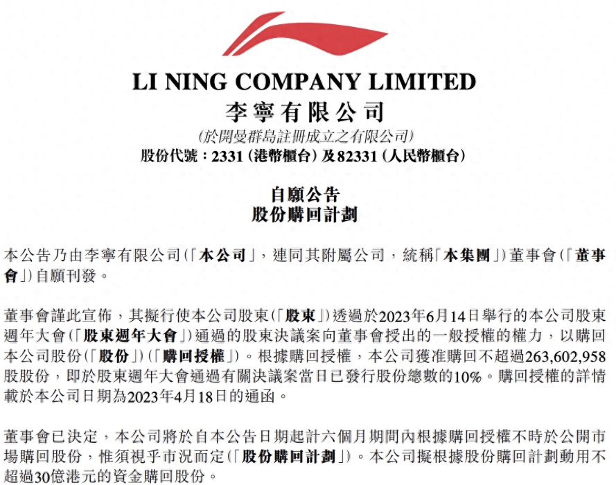 此前,李宁管理层将2023年销售额指引下调至同比增长10%以下,此前指引为同比增长15%。