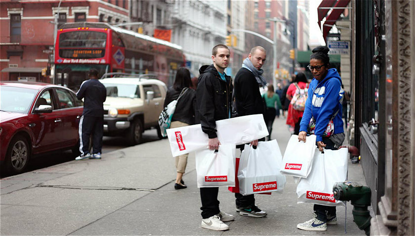 时尚网站thefashionlaw.com分析称,Louis Vuitton或许想要放纵一把,至少尝试用一个季度的时间来感受Supreme疯狂粉丝毫无克制的狂热。他们甘愿在新品发布前连夜排队,就跟苹果发布新iPhone一样。也有人守在电脑前屏息等待,抢购新款T恤。当然,其中不乏见利而起的二道贩子——官方售价150美元的红底logo帽T转手就能卖出五六百美元。