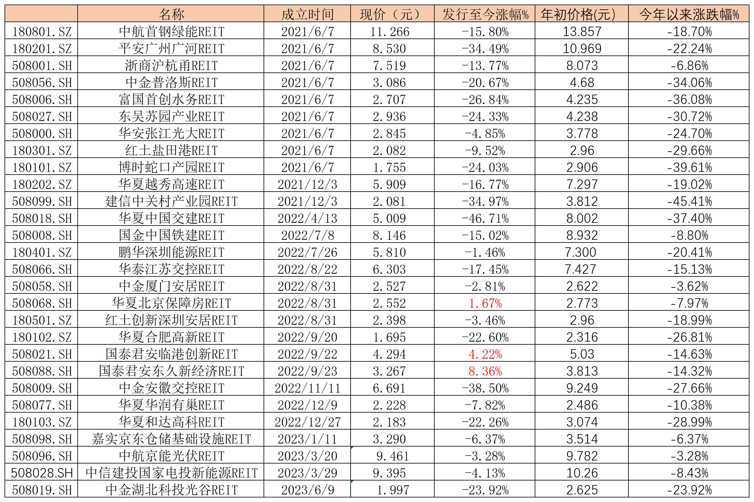 不仅是富国首创REIT,目前共有30只REIT登录交易所,截至12月14日,仅有3只REIT没有跌破发行价。如果将统计范围缩短到2023年,REITs产品在二级市场全线尽墨.