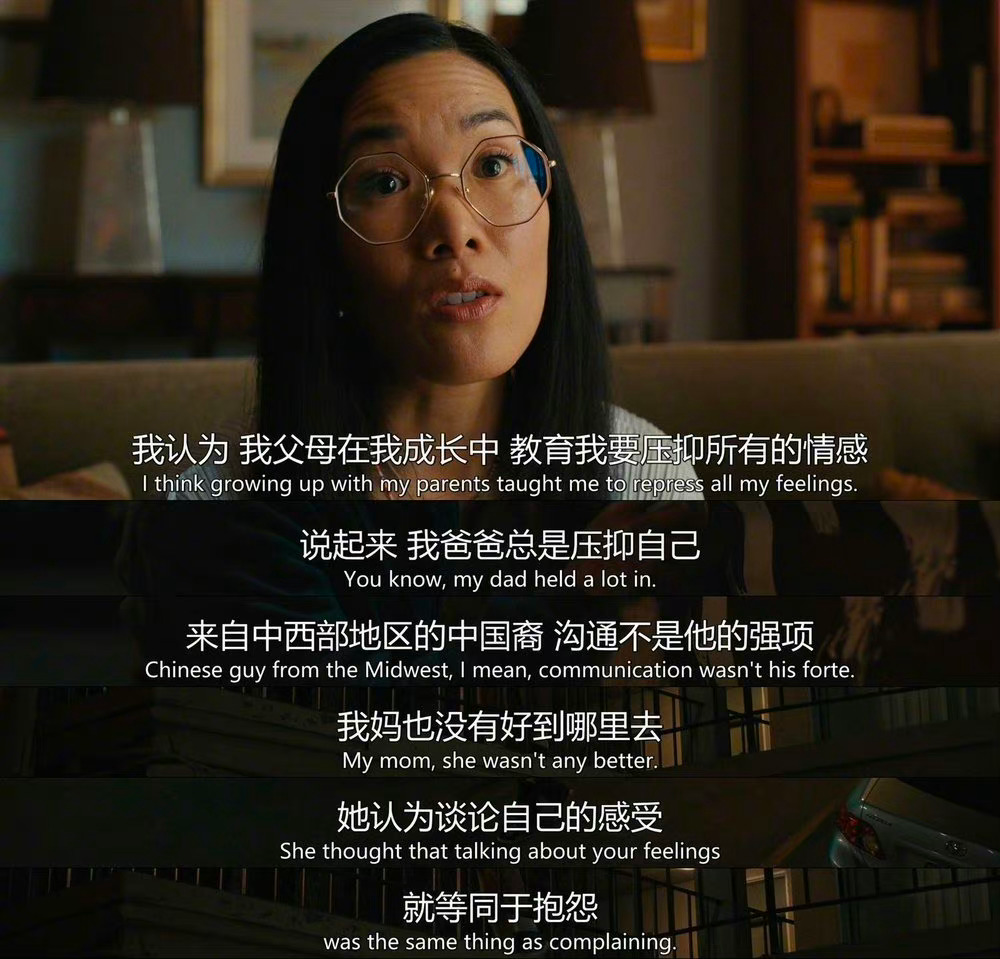 而在西方,大量的亚裔题材也在同步发疯,并试图进行自我探索。《怒呛人生》中,男主想让弟弟在自己身边上大学,拿走了弟弟的大学申请;从小隐忍长大的女主必须做到最好,这种有条件的爱让她不敢去指责自己的父母。《瞬息全宇宙》中,母亲过度的关心干预女儿的人生,真实的女儿变成了能让世界堕入虚无的“贝果”。