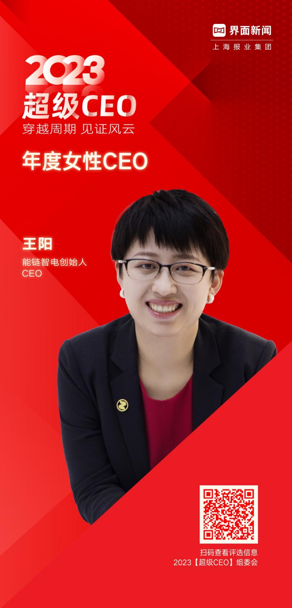 能链智电创始人、CEO王阳女士登陆界面新闻「2023年度女性CEO榜单」。