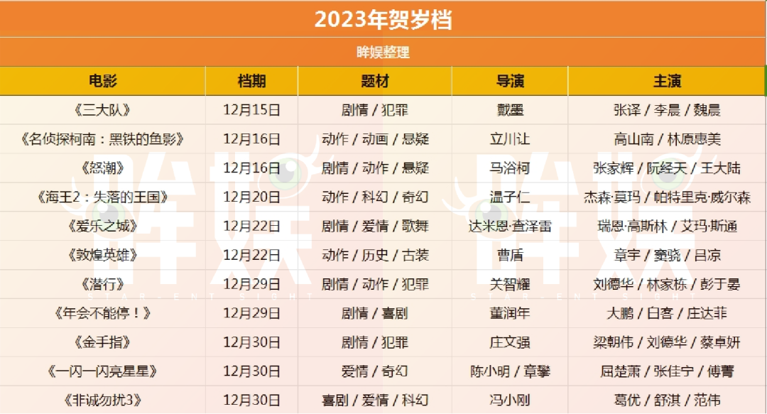 2023年的贺岁档,是个特殊的档期。在经历一整年电影市场的火爆后,即将迎来最后的冲刺阶段,无论是基于市场端观众的报复性观影,还是上游积攒项目的亟待释放,都注定将迎来一波高光。