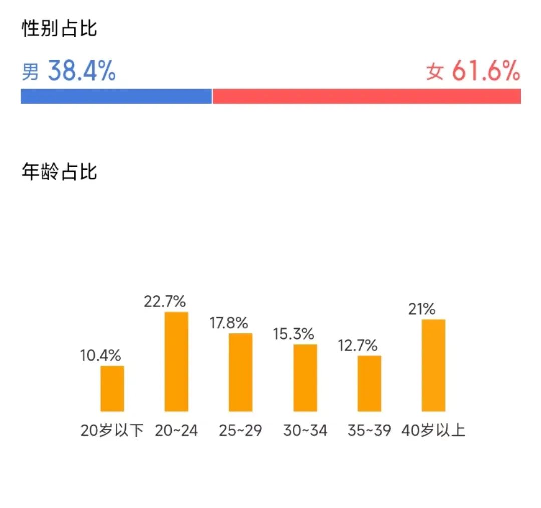 值得关注的是在猫眼想看用户画像上,非主流电影票房贡献者的40岁以上群体占比21%,仅次于22.7%的20岁—24岁用户群体。
