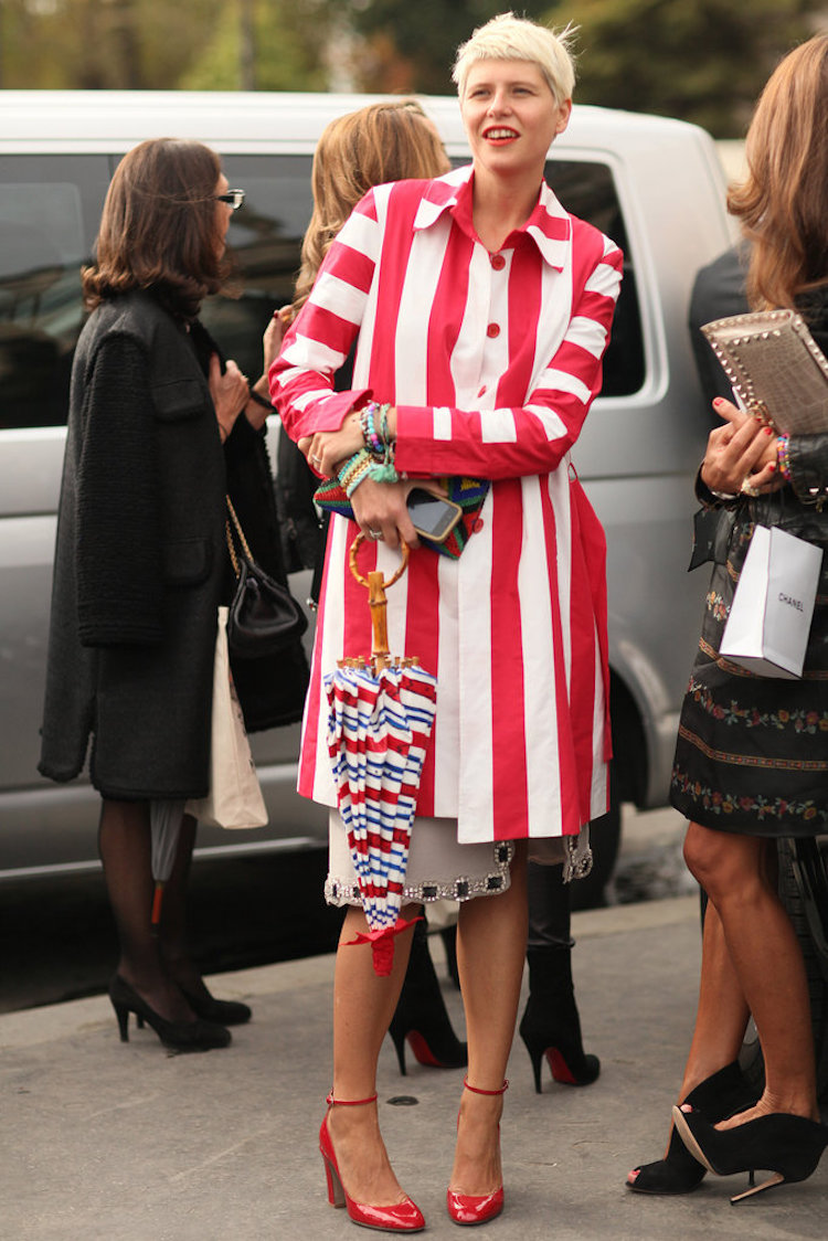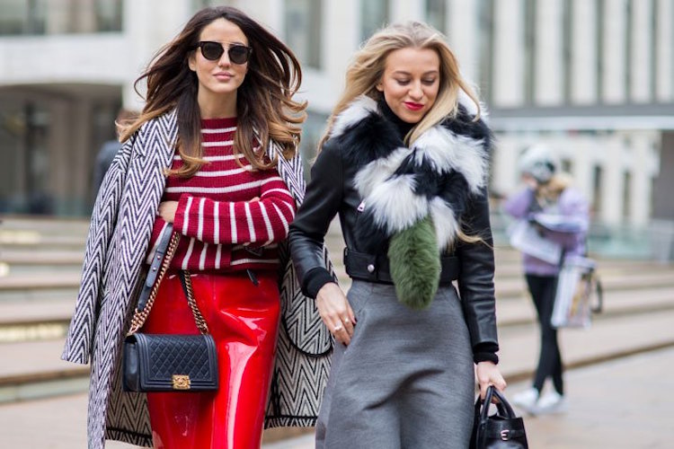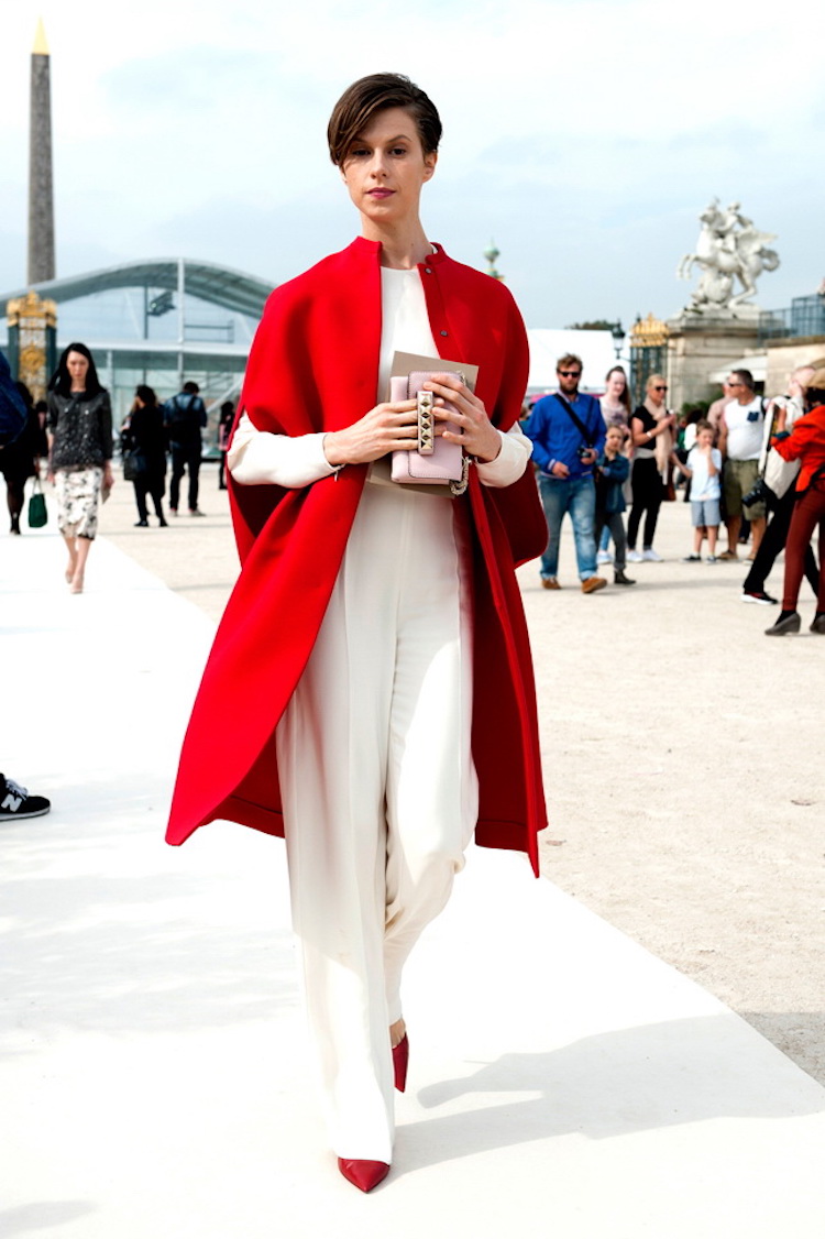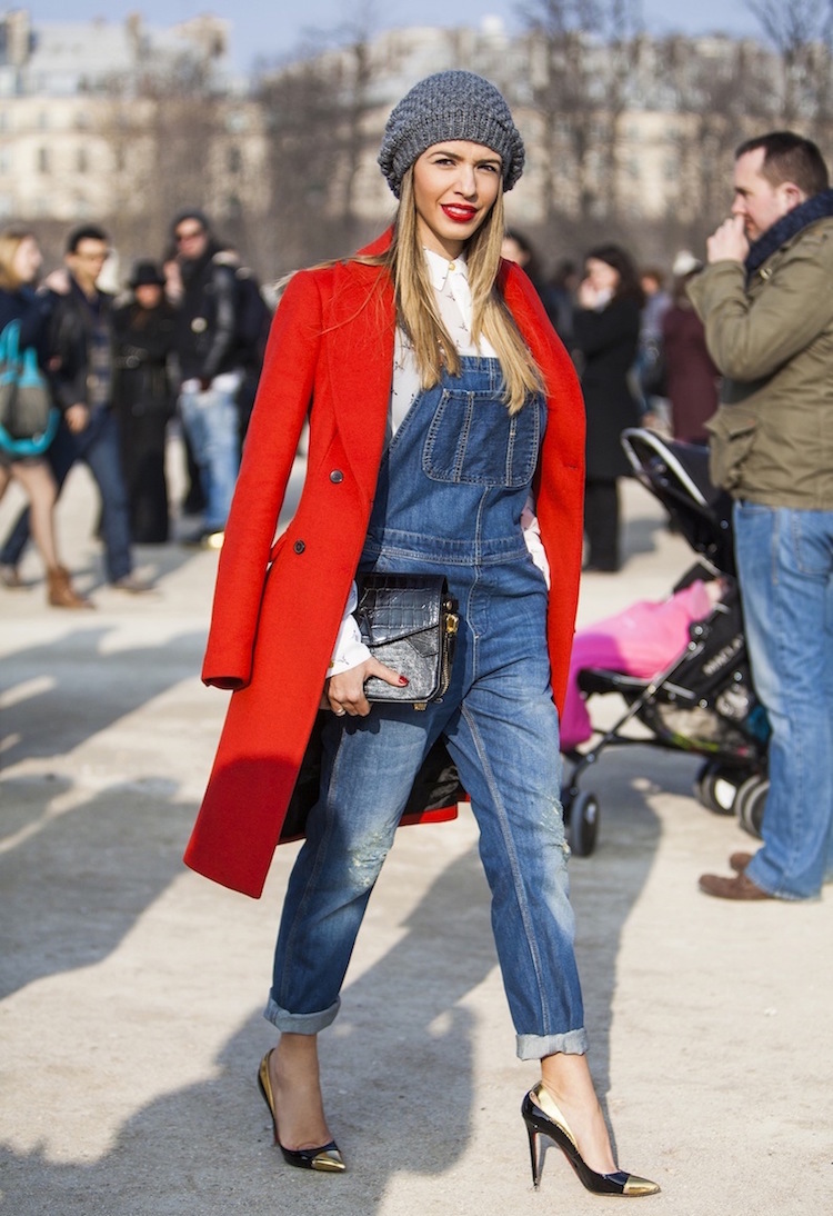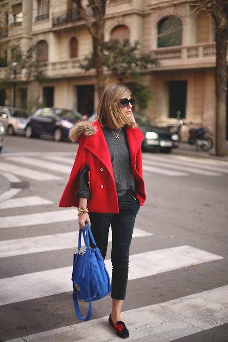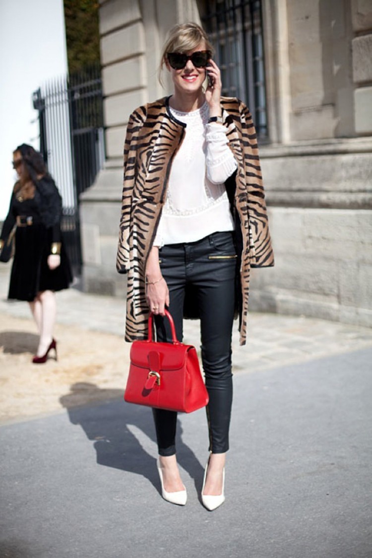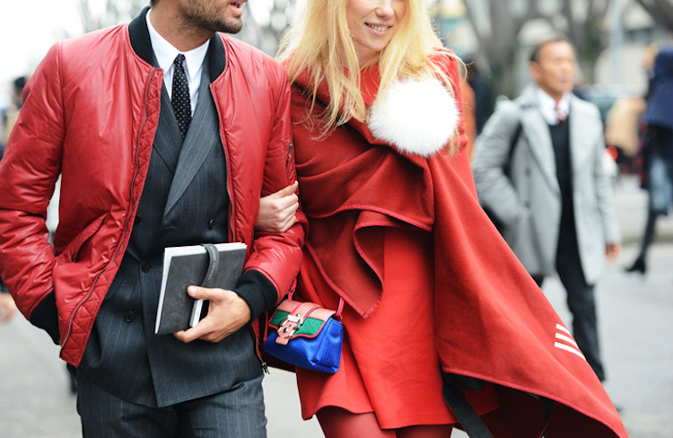要是在东北过年的你,胆大就穿上红色的皮草吧,下面两个欧美街拍的示范可以减少些许扒蒜味。