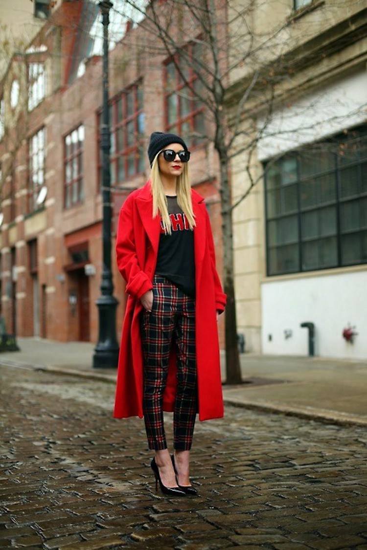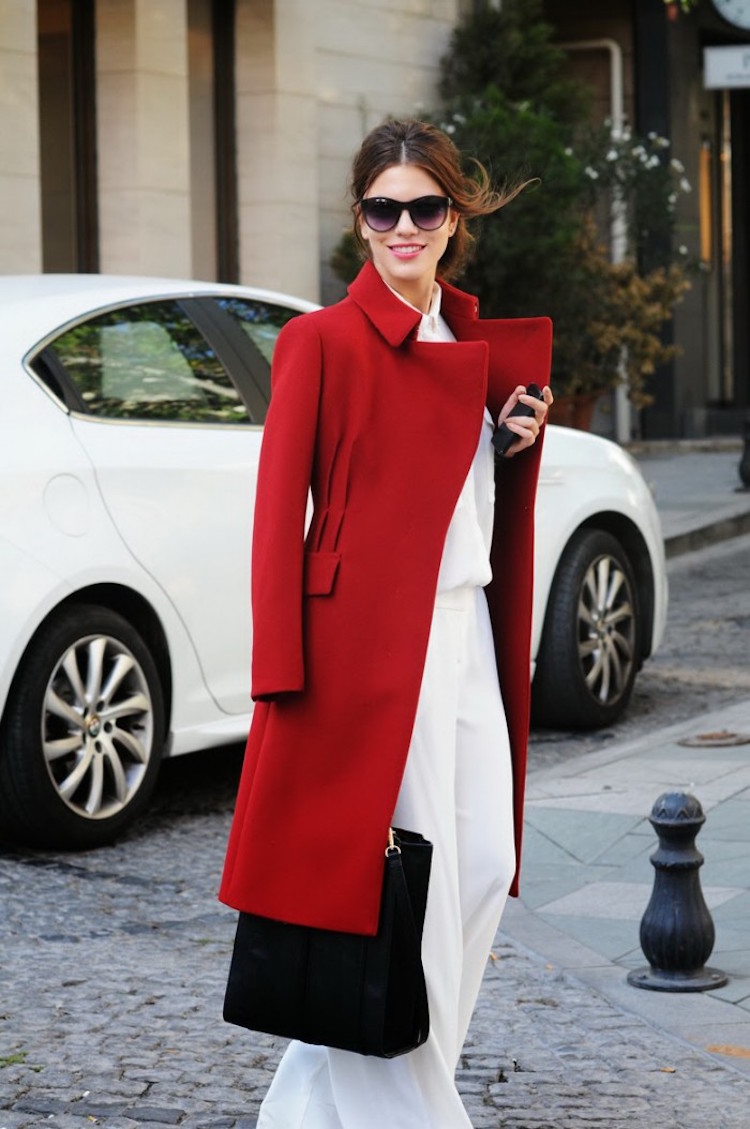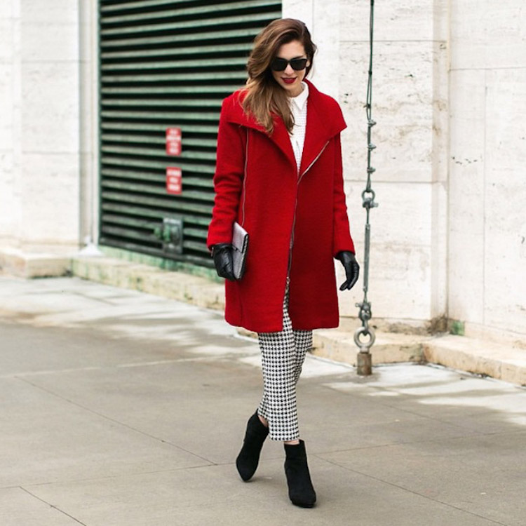 不过新年毕竟是在冬天,想靠红色来驱散雾霾与寒冷的话就购置一件红色大衣吧!内搭可以选择简单的牛仔或者是黑白色系,重点突出红色,或者是选择与红色的相近色系起到整体的和谐。斗篷款适合想要时髦与众不同的人。选择长款的红色大衣不仅时髦度上升,着装御寒度也跟着提升。还有当下预测是2017流行元素的条纹款也可以现在就穿上身了。