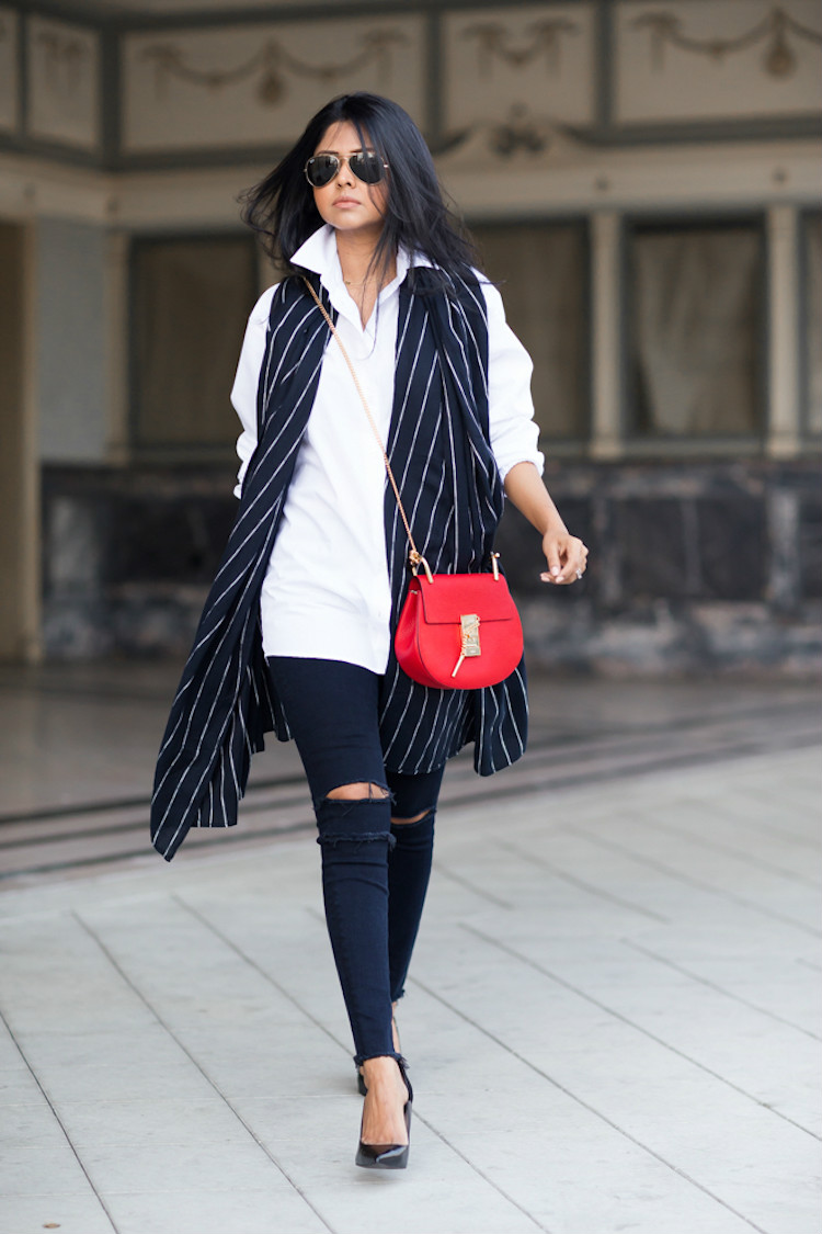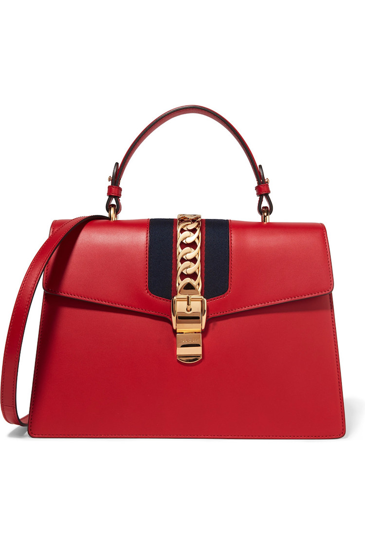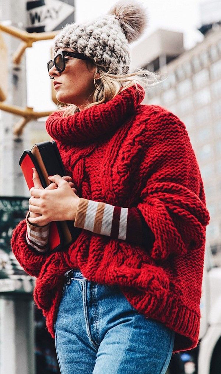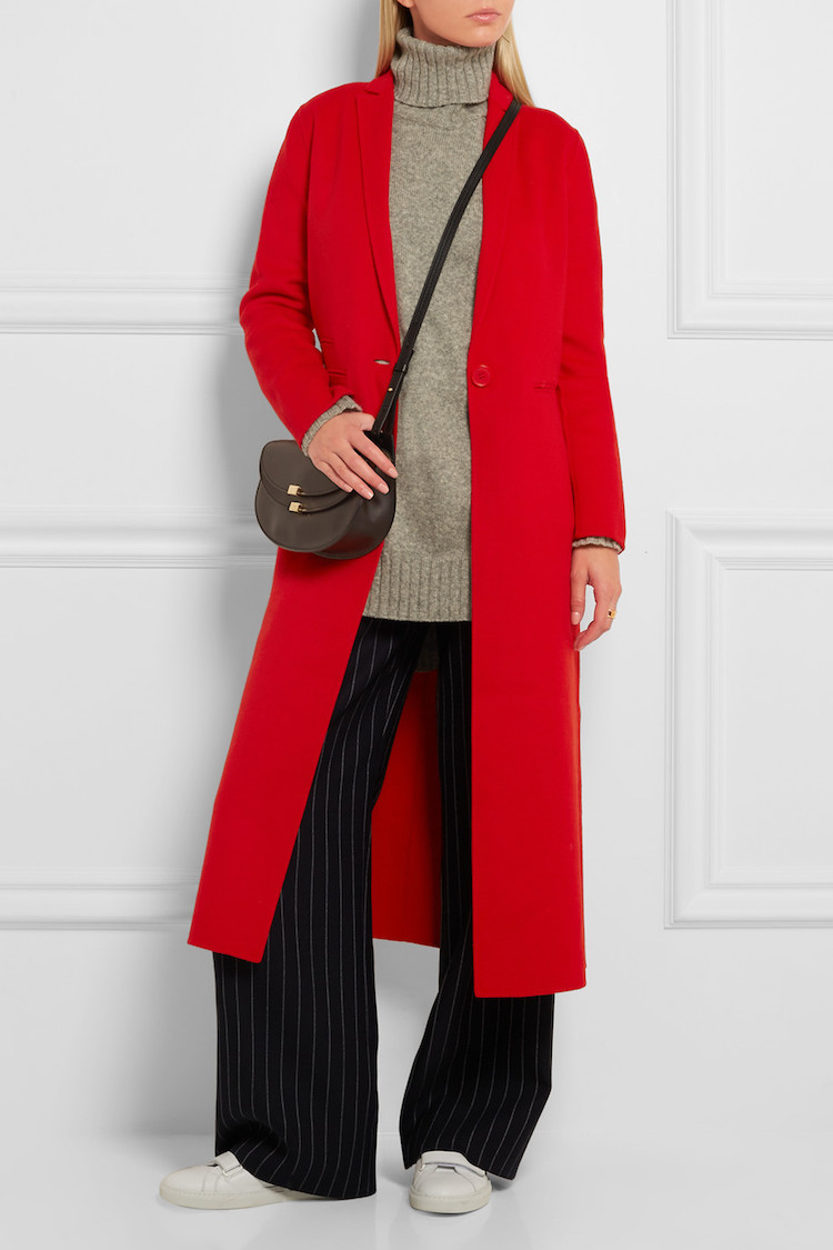 依旧坚持要走高冷调调的话,不如选择一些红色的单品作为点缀,比如漏出的红色袖子与内衬,红色的帽子。除此之外,当然不能忘记红色的包包。即使年后,红色的包包在日常中搭配藏青等深色系的通勤着装也不突兀。各大品牌的包包除了最经典的黑白款也有红色系的包款推出。