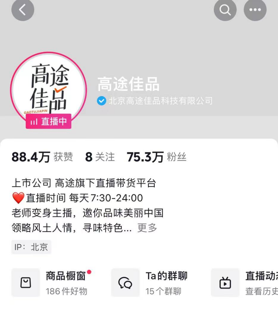 截至最新,高途佳品最新粉丝数量已达75.3万,不到四天时间涨粉近35万。