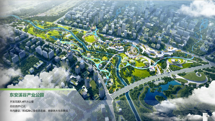 在“产业”方面,片区内拥有东安溪谷产业公园,规划开发范围约1.4 km²,总投资21亿元,预计年内开启建设,将形成20km生态走廊,串联各大生态景观。另外,十陵南站将作为区域内的重点配套推进开发,作为成都市“四主三辅”的铁路客运枢纽辅站之一,十陵南站将承接原成都站所有普速线路、办理天府机场方向的城际铁路作业,并加密开行市域铁路公交化列车,预计将吸引百万客流。目前,十陵南站片区详细城市设计项目招标结果已经公示,计划2025年10月建成。