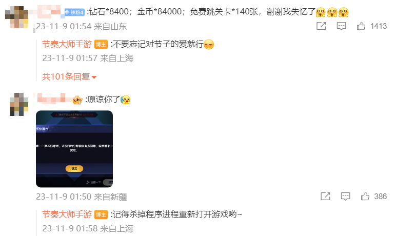 尤其作为一款高DAU,还要接入社交系统和PVP系统的音游来说,它的运营成本也远高于其他音游。不过即便是这样,《节奏大师》对玩家的诚意却是是有目共睹的。就在刚刚回归的时候,因为玩家人数一下猛涨,导致出现了一些之前难以察觉的BUG,导致部分玩家无法顺利体验游戏。而《节奏大师》给出的补偿资源也直接让满腔怒火的玩家“原地失忆”。