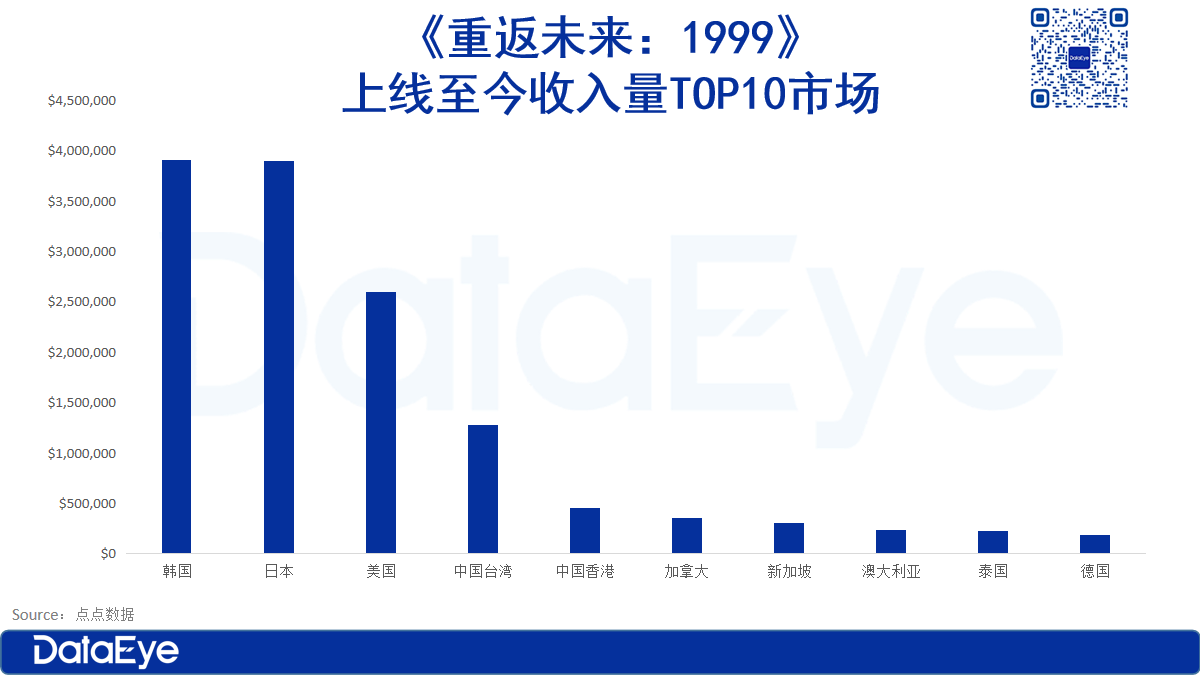 从市场数据来看:《重返未来:1999》在海外市场的数据表现可圈可点。不过,如果考虑到如此高的营销力度,恐怕短期还是亏的——当然,毕竟二游跑长线,深蓝也亟需在海外站稳脚跟。