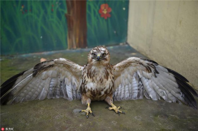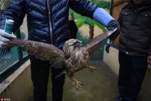2017 年 1月4日,因持续雾霾,一只大鵟难以觅食最终饿晕在开封杞县平城乡王庄村村民王新春家的麦田里。5日,这只落难的大鵟被带到河南省野生动物救护中心治疗。
