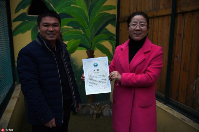" 这只鸟脾气挺倔,喂它玉米和馒头,它连看都不看一眼。" 王新春说,因搞不清大鸟的身份,他不知道该喂大鸟吃什么。看着大鸟有气无力的样子,他担心出意外。1 月 4 日一大早,他就给在县城工作的儿子王纲强打电话。王纲强立即开车赶回家中,经过查看,他发现这是一只猛禽,嘴上带钩,属于食肉动物。随后,王纲强买来一些生肉,切成块喂大鸟。不料,大鸟还是不吃。" 啥都不吃,真怕它会饿死。" 王纲强赶紧开车拉着大鸟去县城。到了一家动物医院后,医生提醒他联系野生动物救护部门。王纲强联系上河南省野生动物救护中心救护科科长邓大军。王纲强将所拍的大鸟照片通过微信发给了邓大军。邓大军确定这是国家二级保护动物大鵟。