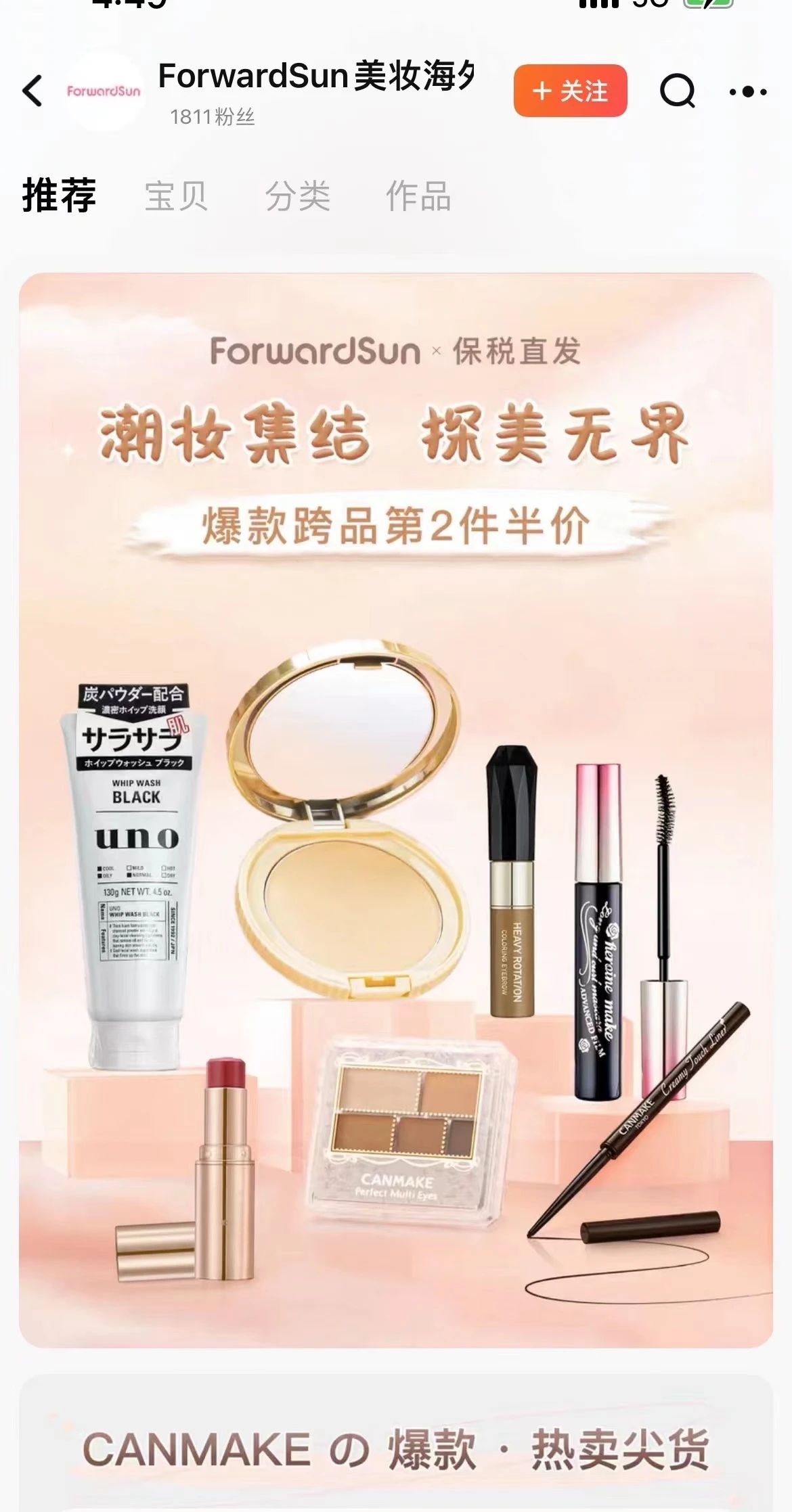 化妆品报在淘宝搜索发现,该店(ForwardSun美妆海外专营店)为日妆集合店,粉丝量不足2000,店内商品均为KISS ME、CANMAKE等平价日妆品牌,口红、眼线笔、睫毛膏为主要售卖品类。该店共售卖三款CEZANNE产品——口红、粉饼、隔离霜,单价均不超过百元,其中,口红为销量TOP1,已售400+。