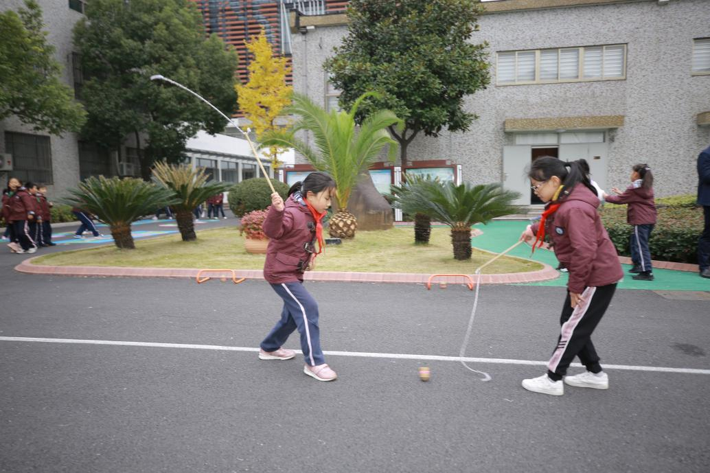 学生们在课堂上学习,在课堂外操练。传统游戏让“课间十分钟”不仅成为了“五育并举”的演练场,也成为了让学生个性成长的活舞台。