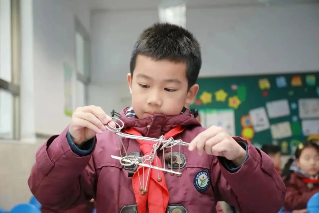 “滚铁环”“挑帮帮”,促使孩子们玩成一片。学生们在学游戏、玩游戏的过程中得到身心的休息,“两枚橄榄核”“一纸同心圆”,简单的玩具却可以让他们围在一起玩很久,积极地思考与讨论,不断挑战努力赢得胜利的他们学会了合作,感受到了积极进取的快乐。