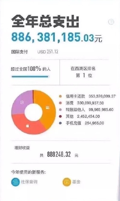 当然,这些账单最多分享、最让人震惊的就是看起来难以置信的高昂总支出,从几十万到几百万的年度账单,许多人感慨“平时总来没见过这么多钱”。当然理论上,并不是账单里所有的金额都能称之为“支出”,有的只是走过支付宝的流水。不过这个数字大概会让你忍不住感叹,原来自己这么离不开支付宝;以及,真的会让人产生一秒自己很有钱的错觉。