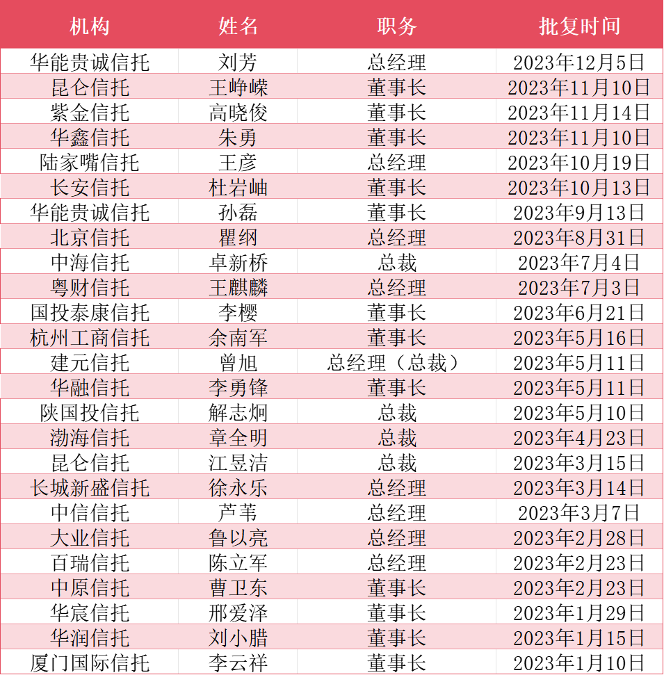 行业转型压力下,“高频”依然是2023年信托公司高层人事调整关键词。