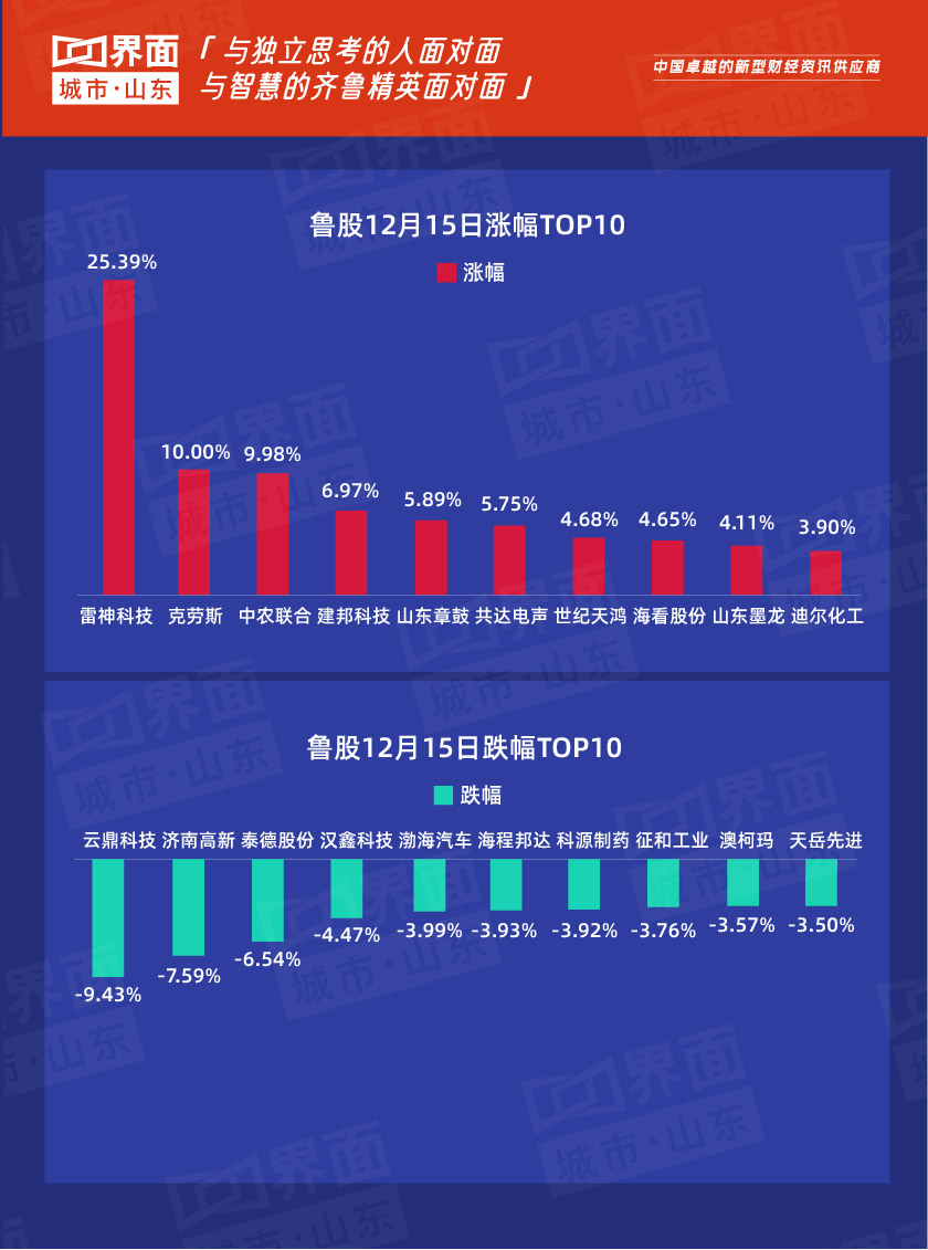 青岛市涨幅榜首:雷神科技(872190),涨幅:25.39%,股价23.95元,总市值23.95亿元;